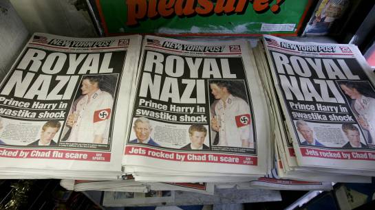 Su mayor escándalo se produjo en 2005, cuando, con 21 años, fue cazado por los paparazzi ataviado con un uniforme nazi en una fiesta privada de disfraces, acontecimiento por el que se disculpó mediante un comunicado en el que lamentó su "mala decisión".