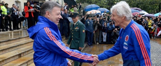 “Los colombianos no tenemos como agradecerle lo que usted ha hecho por la selección y lo que la selección ha hecho por Colombia, cada vez que ustedes juegan Colombia se da cuenta como vibra el país”, consideró el presidente Santos.