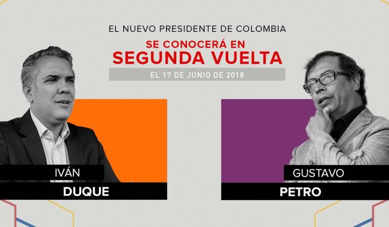 Después de una larga campaña, con una masiva participación de los colombianos, la democracia ha hablado, Iván Duque, el candidato de Centro Democrático y Gustavo Petro Urrego, el candidato de Colombia Humana y MAIS disputarán la segunda vuelta presidencial, para definir quien llevará las riendas del país en los próximos cuatro años.