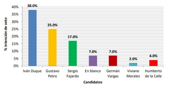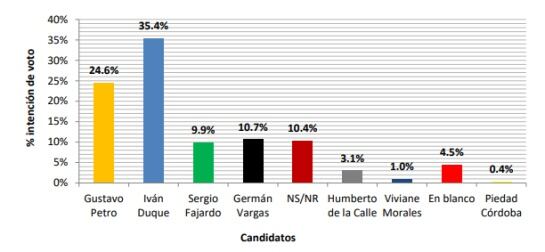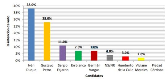A su vez, la  encuesta adelantada por la firma Yanhaas ,se aproximó al porcentaje final que obtuvo el candidato Iván Duque.