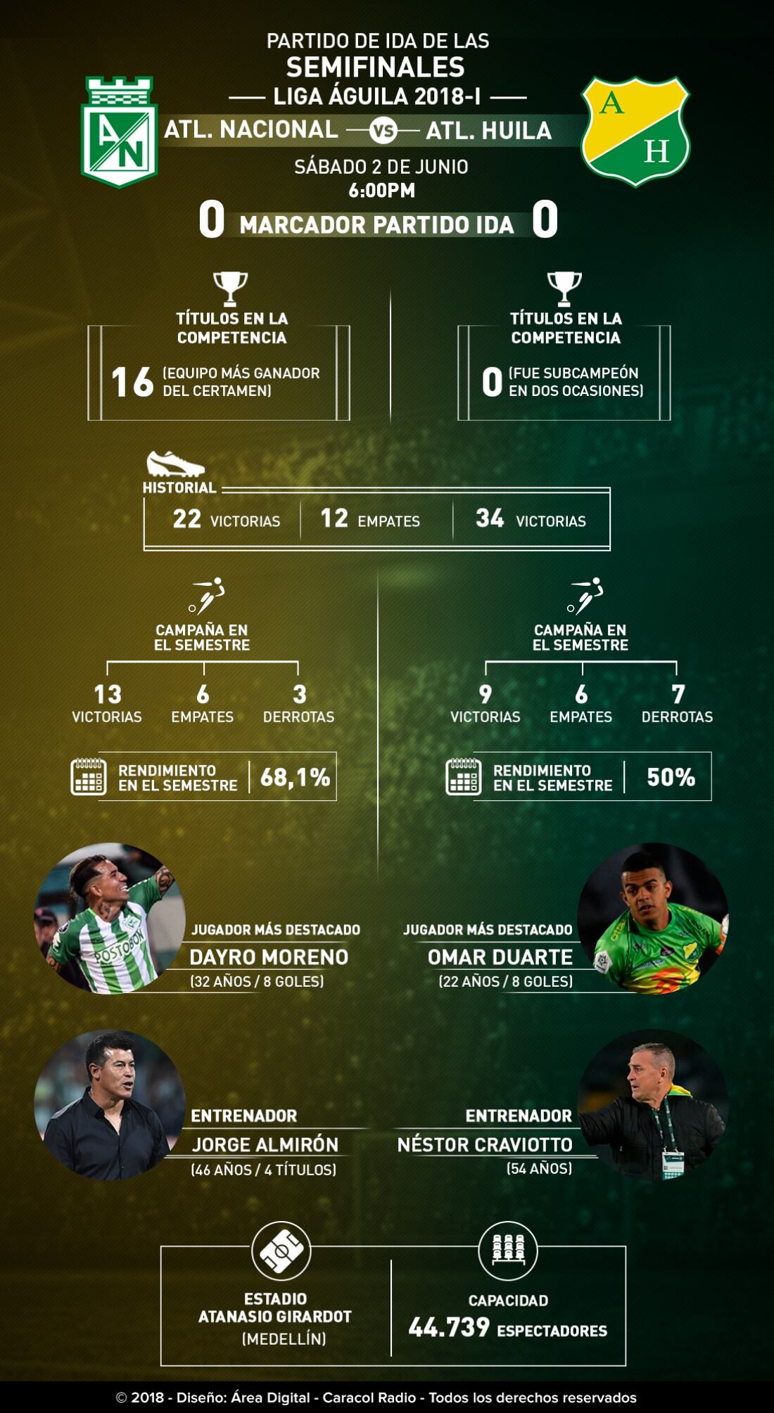 Nacional y Huila definirán el primer finalista de la Liga Águila