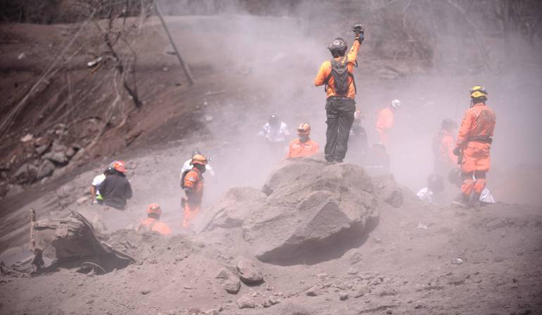 El portavoz de la Coordinadora Nacional para la Reducción de Desastres (Conred), David de León, explicó que las labores de búsqueda y rescate fueron suspendidas, de momento, debido a las malas condiciones climáticas y por el material caliente que está depositado en las áreas afectadas por la actividad del coloso.