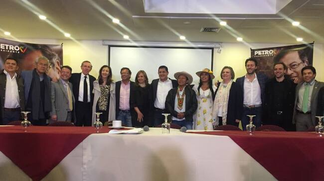 Por otro lado, representantes del Partido Verde, del Polo Democrático Alternativo, del Partido Liberal, el partido UP, el movimiento fuerza ciudadana de Carlos Caicedo, el movimiento indígena, el partido que lidera Clara López y su última adición, Ingrid Betancourt, e incluso un representante del Partido de la U, acompañaron a Gustavo Petro y a Ángela María Robledo a presentar la gran alianza que, según ellos, busca proteger la paz en Colombia.