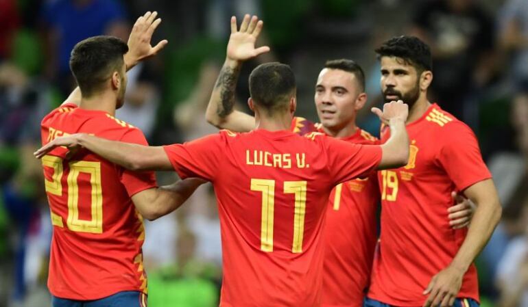1 - España: De Gea; Odriozola (Nacho, m.46), Sergio Ramos, Piqué, Jordi Alba (Iago Aspas, m.); Busquets, Thiago (Koke, m.46); Iniesta, Isco (Lucas Vázquez, m.46), Silva (Asensio, m.60); y Rodrigo (Diego Costa, m.60) Seleccionador: Julen Lopetegui.