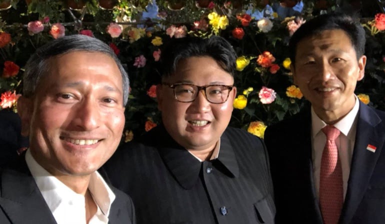 No podía faltar el selfi durante el paseo por los bucólicos jardines. El encargado de retratar el momento para la posteridad fue el ministro de Exteriores de Singapur, Vivian Balakrishnan, que publicaba en su Twitter un autorretrato de un sonriente y despeinado Kim flanqueado por él y un exministro de Educación singapurense, Ong Ye Kung, dentro de un invernadero del parque. Después Kim se dirigía al observatorio del Marina Bay Sands, en la planta 57 del hotel, desde donde se puede ver toda la isla y que había cerrado dos horas antes de lo habitual para preparar la llegada del norcoreano.