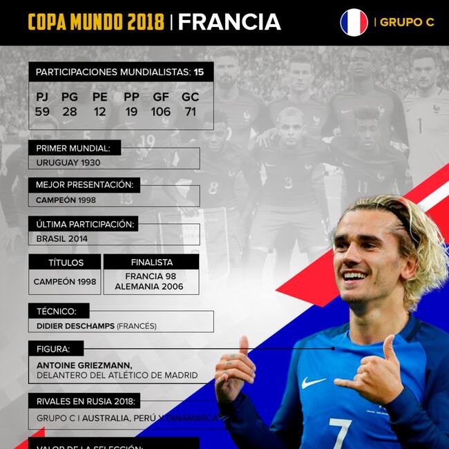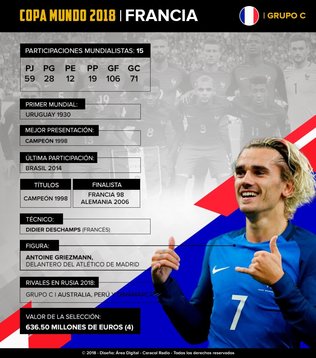 Los franceses estarán en el Grupo C junto a Perú, Dinamarca y Australia.