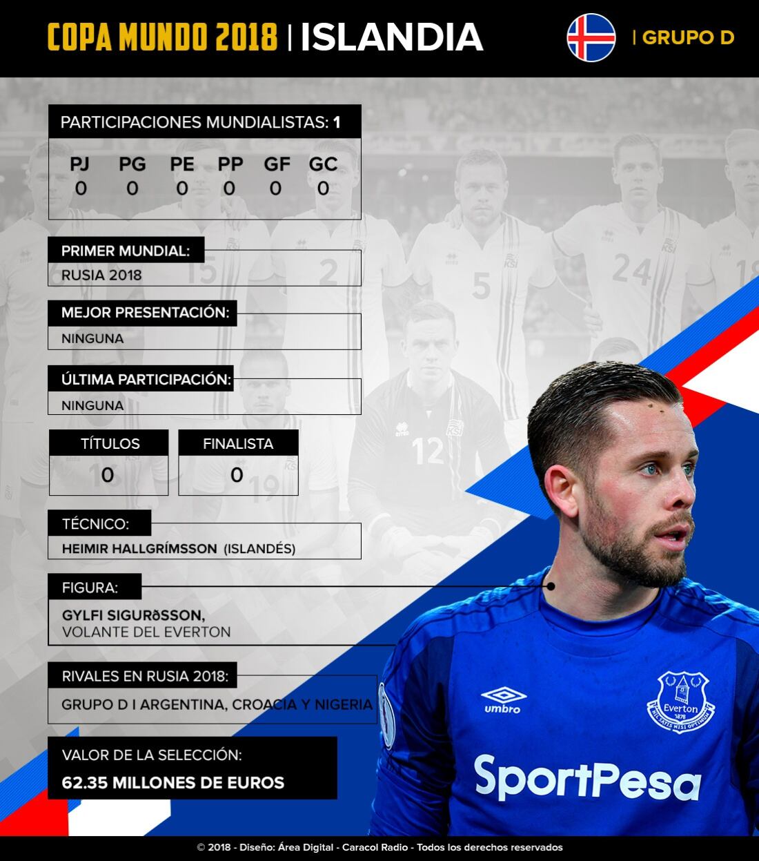 Los islandeses debutarán en Mundiales en el Grupo D.