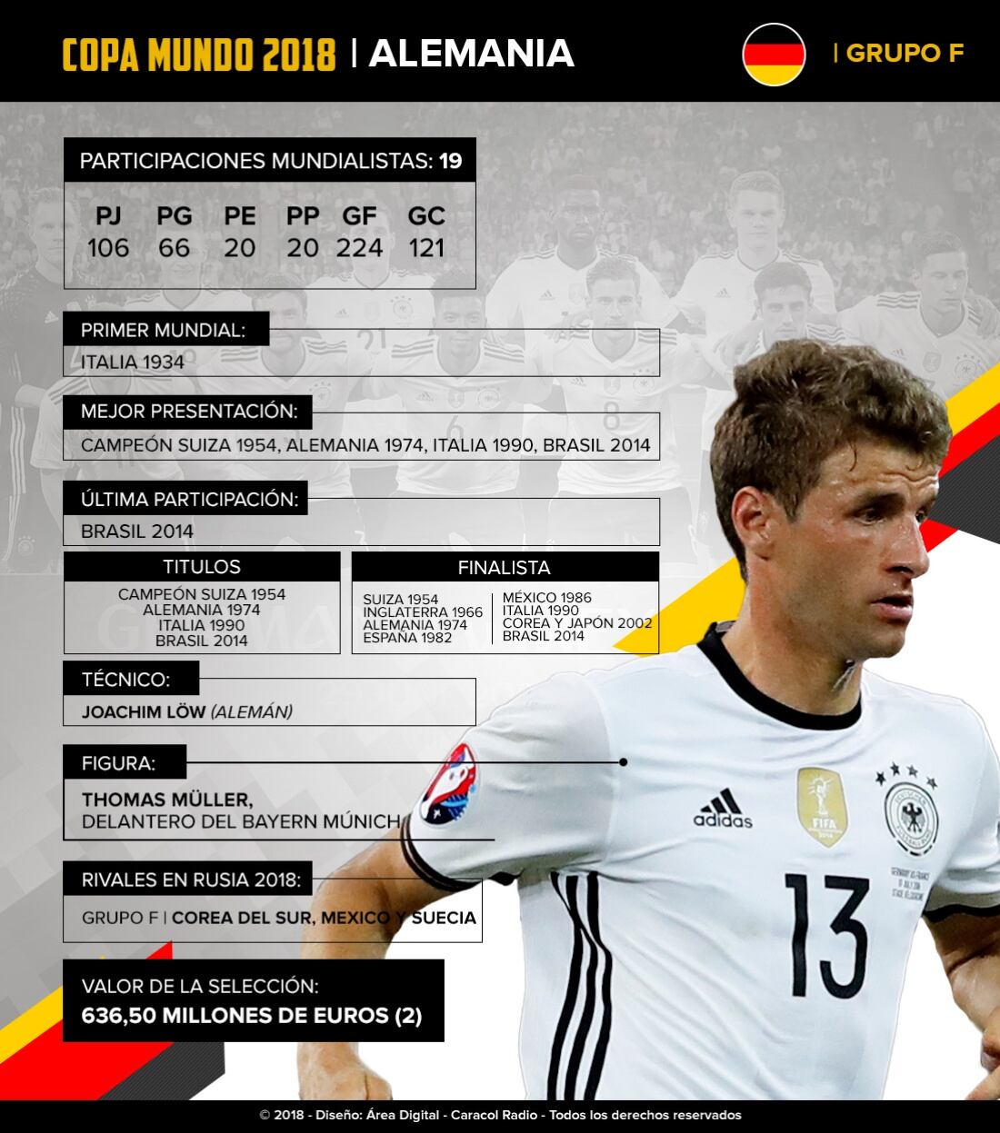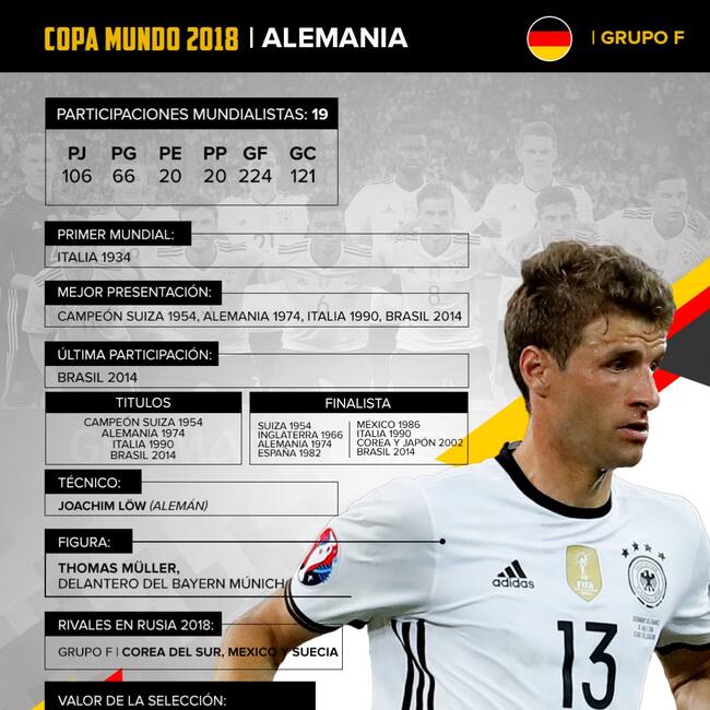 El combinado europeo estará en el grupo F con México, Suecia y Corea del Sur.