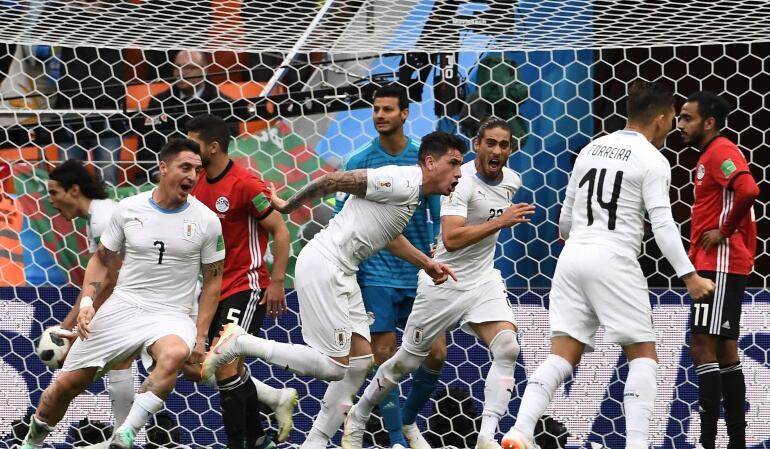 José María Giménez, en el minuto 89, en un remate de cabeza agónico a la salida de una falta botada desde el costado derecho por Carlos Sánchez, acabó con la resistencia de Egipto, que estuvo a un paso de amarrar un empate sin Mohamed Salah y con una buena actuación de su portero, Mohamed El Shenawy.