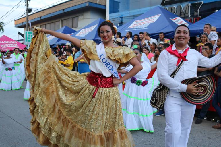 Parada folclórica cordobesa con las candidatas nacionales e internacionales, comparsas y grupos folclóricos de municipios y empresas del departamento de Córdoba.