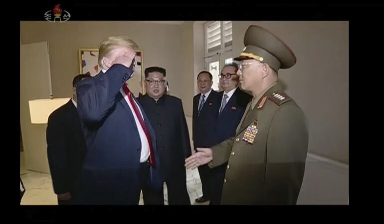 Donald Trump, de nuevo se fue en contra de las normas presidenciales. Esta vez el mandatario estadunidense saludó a un general de Corea del Norte al estilo militar.