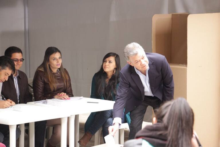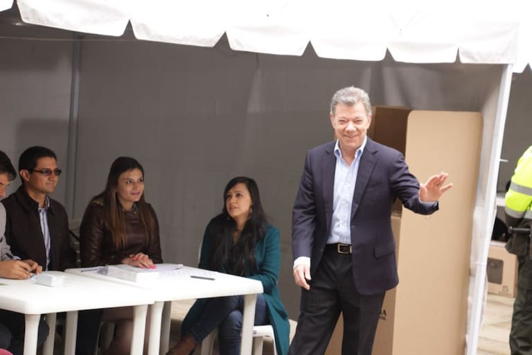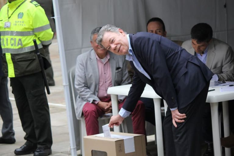 Juan Manuel Santos depositando su voto