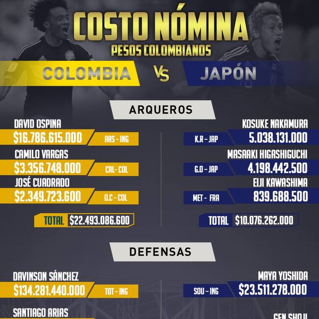 Peso por peso: valor de las nóminas de Colombia y Japón