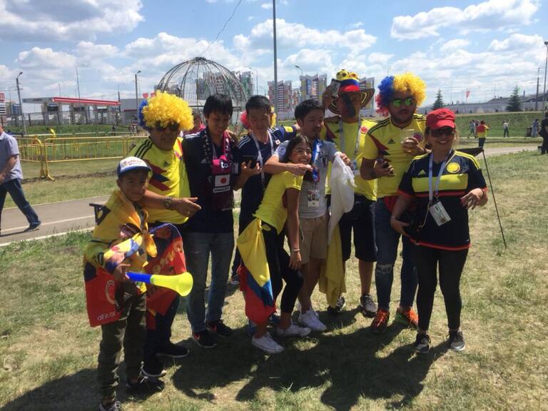 Hinchas Colombianos y Japoneses