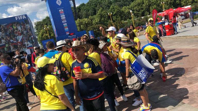 Hinchas colombianos arman la fiesta en Saransk