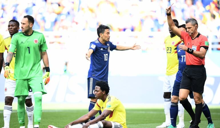 El volante colombiano vio la tarjeta roja comenzando el encuentro ante Japón.