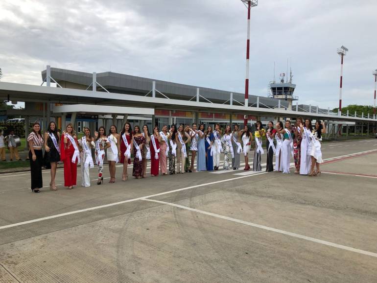 El aeropuerto Los Garzones fue el escenario escogido para dar la bienvenida oficial a las candidatas.