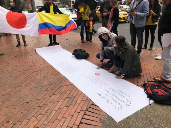 En la embajada de Japón, en Bogotá, varios fueron quienes hicieron parte de una campaña que buscaba excusarse con los japoneses debido a los comportamientos que dejaron ver el lado negativo de los colombianos en Rusia 2018.
