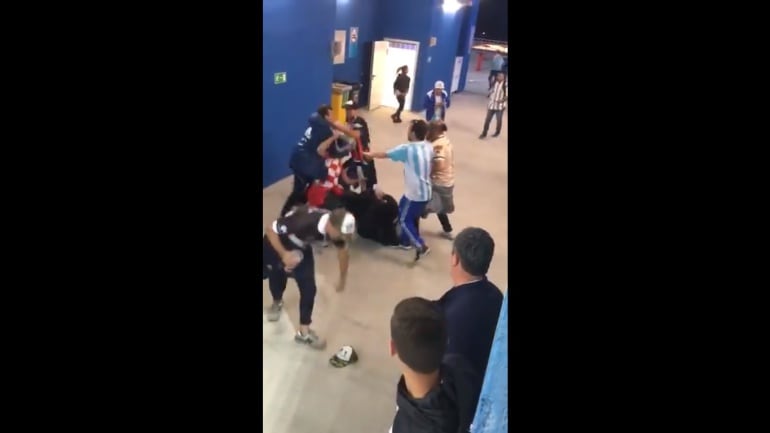 Los fanáticos con camisetas de San Lorenzo y Platense, principalmente, arremetieron contra dos hinchas rivales tras la derrota del equipo sudamericano 3-0 antes de que la seguridad rusa interviniera, a pesar de que algunas personas intentan defender a los golpeados su acción no tiene repercusión.