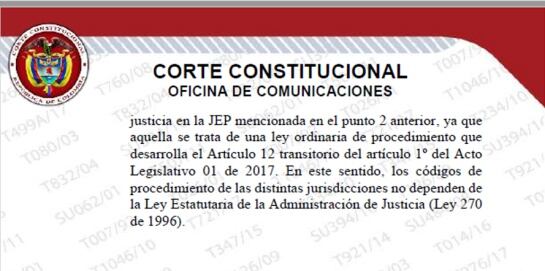 Reglamento de la JEP sin pronunciamiento de la Corte