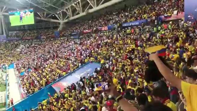 Video: Colombianos convierten estadio de Kazán en una mancha amarilla