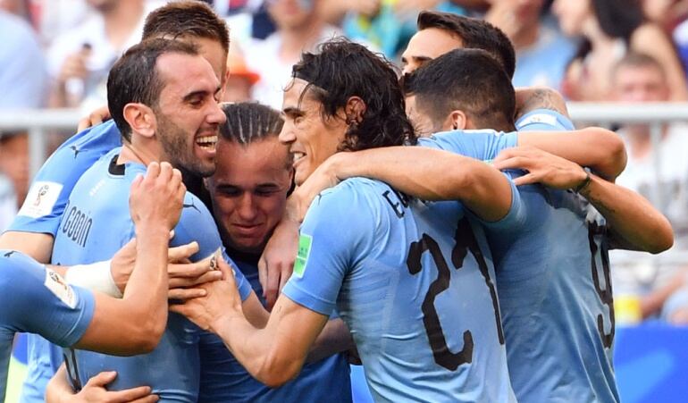 Suárez, al ejecutar con acierto una falta fuera del área en el minuto 10, y Cheryshev al desviar contra su meta un disparo de Diego Laxalt (m.23) decidieron el partido en la primera mitad, en la que la selección rusa sufrió, además, la expulsión de Igor Smolnikov, en el minuto 36, por doble amonestación. En el minuto 90, por último, Cavani cerró la cuenta.