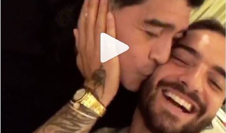 Y luego aparece Maradona y luego Maluma agarra la cara del argentino, quien lo besa en la mejilla.