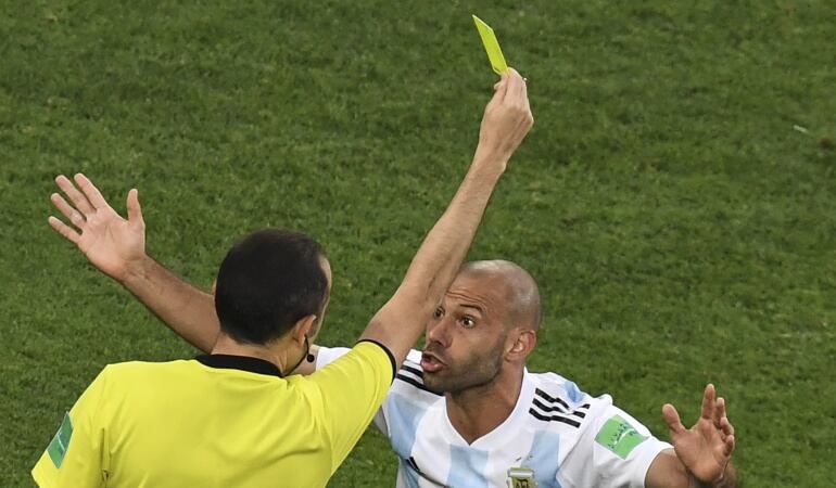 El argentino Javier Mascherano ha visto una cartulina amarilla en el transcurso del partido ante Francia, de los octavos de final de Rusia 2018, con lo que se ha convertido en el jugador más amonestado en la historia de la Copa del Mundo con siete.