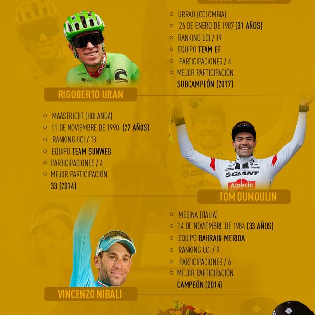 Rigoberto Urán y Nairo Quintana son las cartas fuertes de Colombia en el podio.