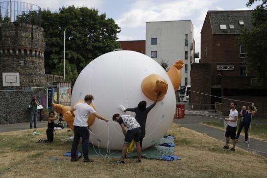 Baby Trump, la particular protesta con que reciben al presidente de EE.UU