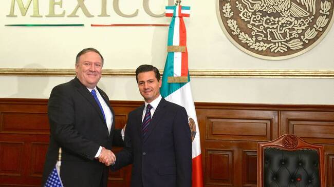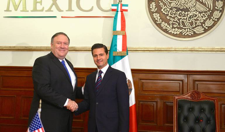 Una comitiva encabezada por Pompeo visita este viernes México para reunirse con el actual presidente Enrique Peña Nieto y el futuro mandatario Andrés Manuel López Obrador, en el que supone el primer acercamiento cara a cara de líder izquierdista con el Gobierno de Estados Unidos.