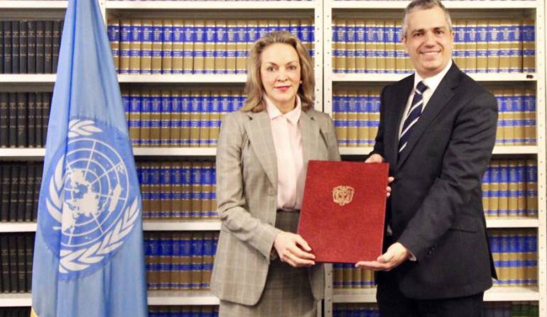 La embajadora colombiana ante Naciones Unidas, María Emma Mejía, fue la encargada de depositar el documento en la sede de la organización.