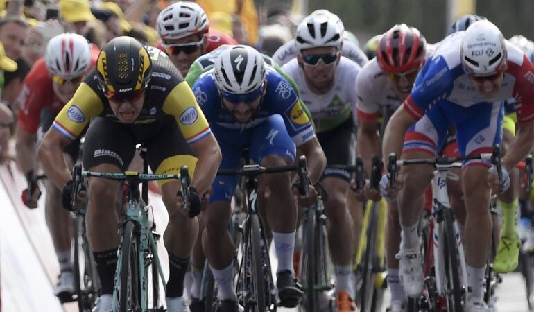 Groenewegem, nacido hace 25 años en Amsterdam, volvió a exhibirse ante los mejores del pelotón. Batió en un largo esprint al alemán André Greipel (Lotto Soudal) y al colombiano Fernando Gaviria (Quick Step), con un tiempo de 4h.23.36.