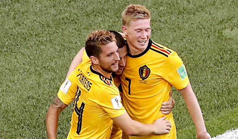 El lateral Thomas Meunier adelantó a Bélgica con un gol al minuto 4, fruto de un buen pase del delantero Romelu Lukaku para el lateral izquierdo Nacer Chadli, cuyo centro largo fue rematado por Meunier, libre de marca en la derecha.