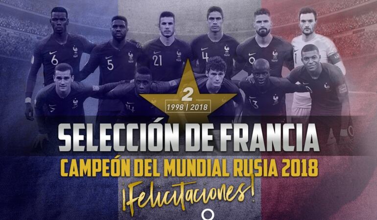 Veinte años después de lograrlo en su templo de Saint Denis, con Didier Deschamps como capitán y con Zinedine Zidane de gran figura, Francia impuso ante Croacia la ley del más fuerte para convertirse por segunda vez en su historia en campeona del mundo, esta vez en Moscú.