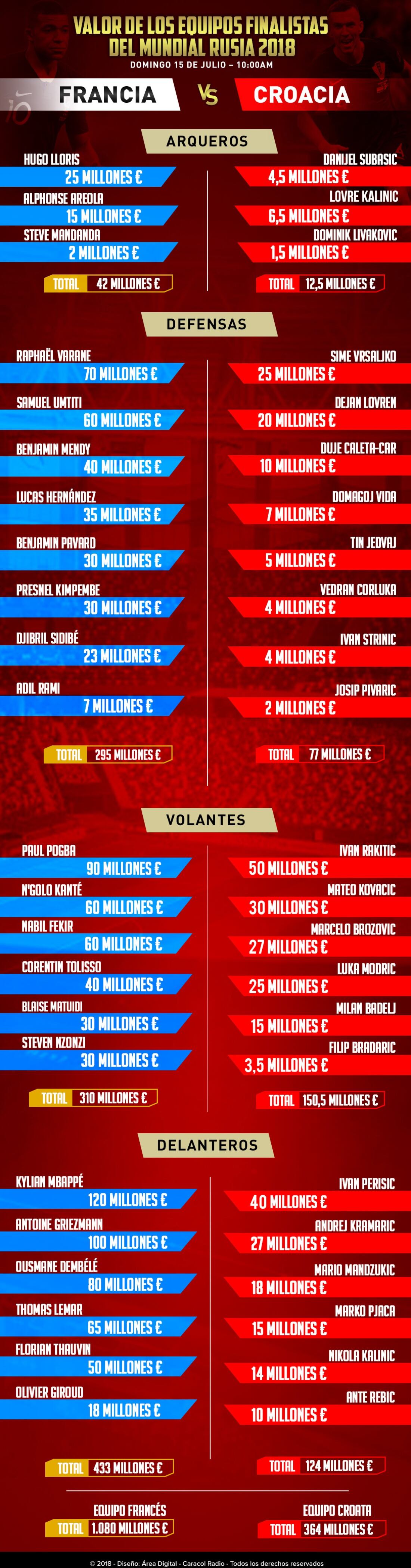 Peso por peso: valor de las nóminas de Francia y Croacia