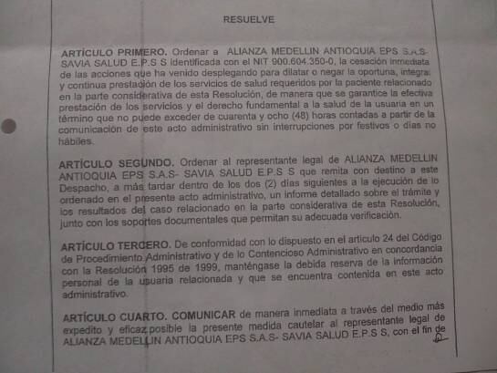 De acuerdo con Castellanos, durante los años 2016 y 2017 la Superintendencia Nacional de Salud expidió más de 500 Resoluciones Administrativas semestrales que contenían medidas cautelares dando a las EPS un plazo máximo de 48 horas para cesar las acciones que ponen en riesgo la integridad personal o la vida de los pacientes, con fundamento en la Ley 1438 de 2011.