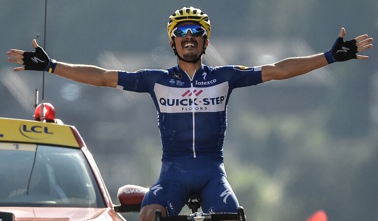 La bajada fue triunfal para Alaphilippe, valiente y convencido de que le llegaba un momento inolvidable. Nadie pudo impedir su bautizo en el Tour. Se le escapó la etapa del Muro de Brataña, pero esta vez no perdonó. El ganador de la Flecha Valona, un "Valverde francés", estrenó además el casillero francés.