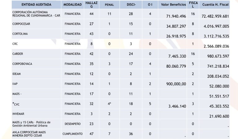 Para el caso de la CAR Cundinamarca, los hallazgos fiscales superaron los $72.000 millones.