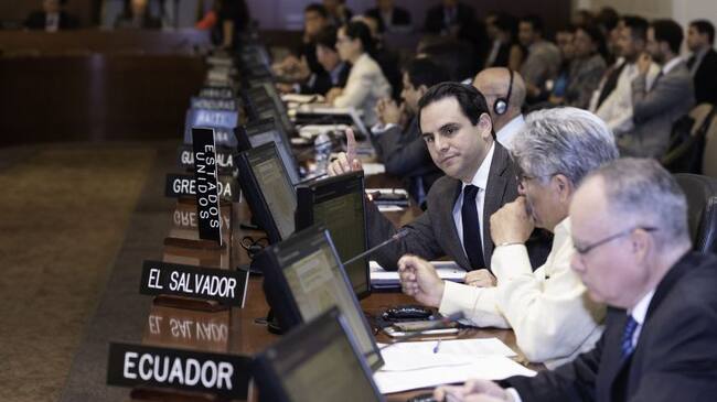 La resolución fue aprobada con el voto a favor de 21 de los 34 países que son miembros activos de la OEA, mientras que tres (Nicaragua, Venezuela y San Vicente y las Granadinas) votaron en contra y se registraron siete abstenciones, así como tres ausentes, entre ellos Bolivia.