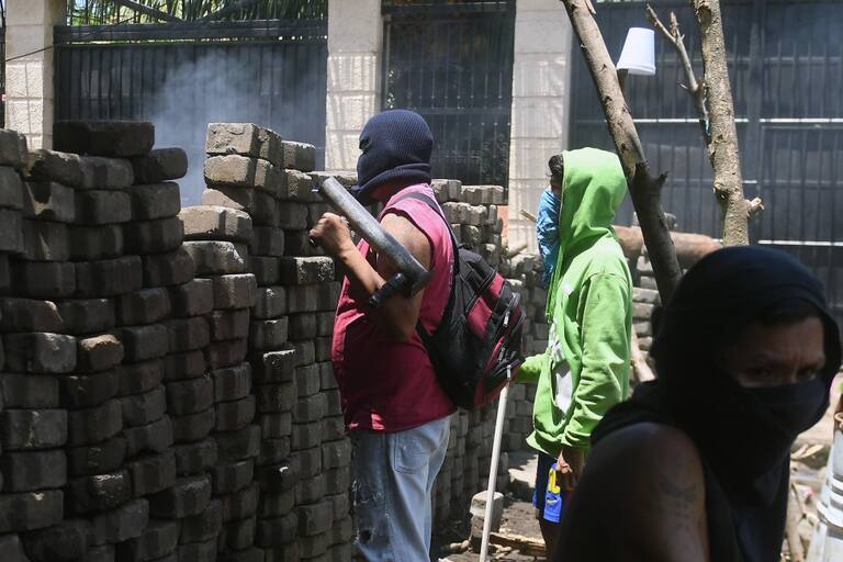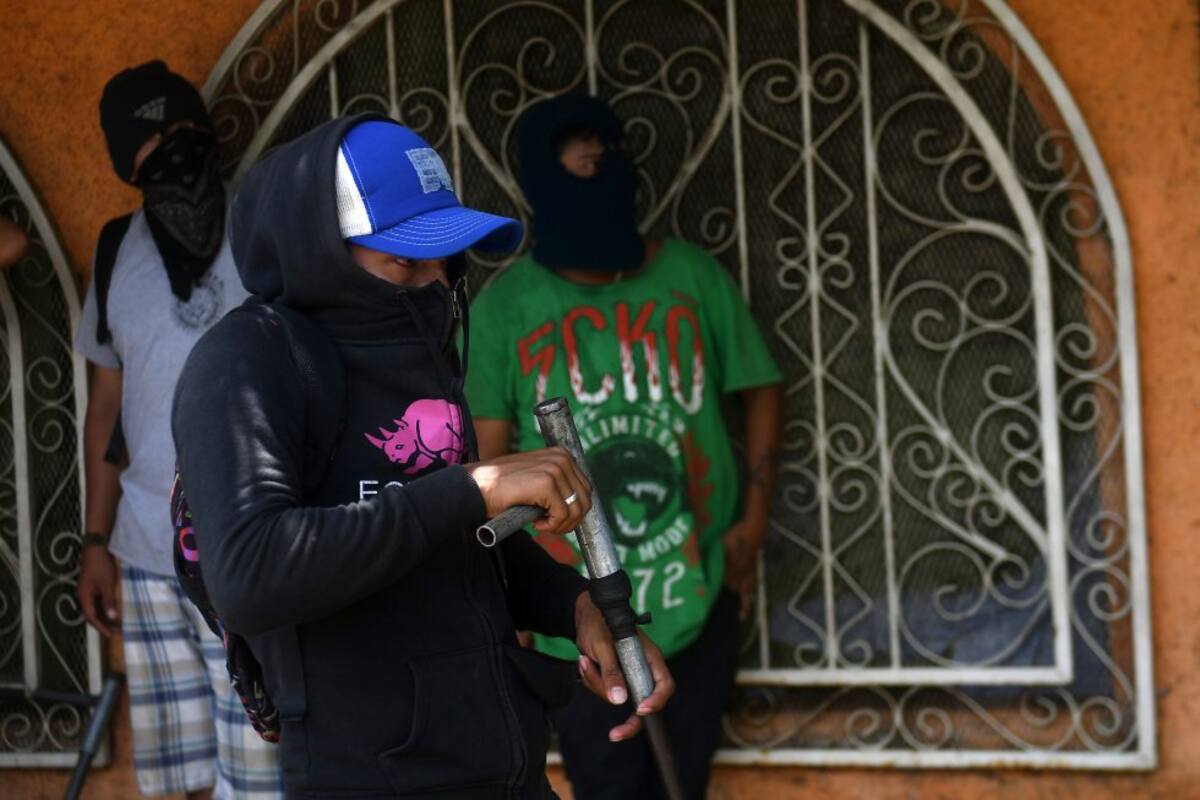 • Personas con la cara tapada vigilan las calles en la ciudad de Masaya, Nicaragua.