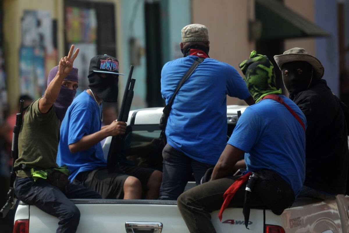• Los paramilitares son vistos en un camión en el barrio de Monimbo en Masaya, Nicaragua, luego de enfrentamientos con manifestantes antigubernamentales.