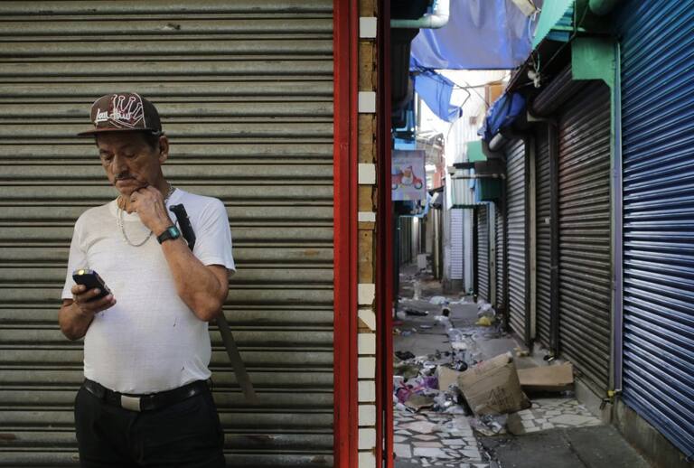 • Un hombre con un machete monta guardia en el mercado 'Oriental' de Managua, durante una huelga general nacional.