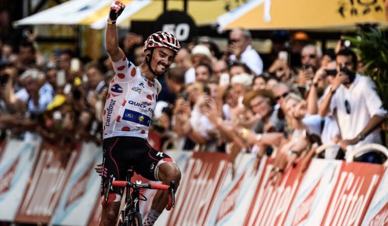 Alaphilippe superó en el último descenso al británico Adam Yates, quien también se vio involucrado en una caída y ahí el francés se fue solo por la victoria.