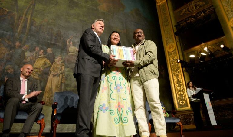En un acto público en el Teatro Colón, el jefe de Estado junto al alto comisionado para la Paz, Rodrigo Rivera y representantes de las víctimas del conflicto dieron a conocer una recopilación bibliográfica que recoge discursos, comunicados, actas, declaraciones, fotografías, entre otros documentos.