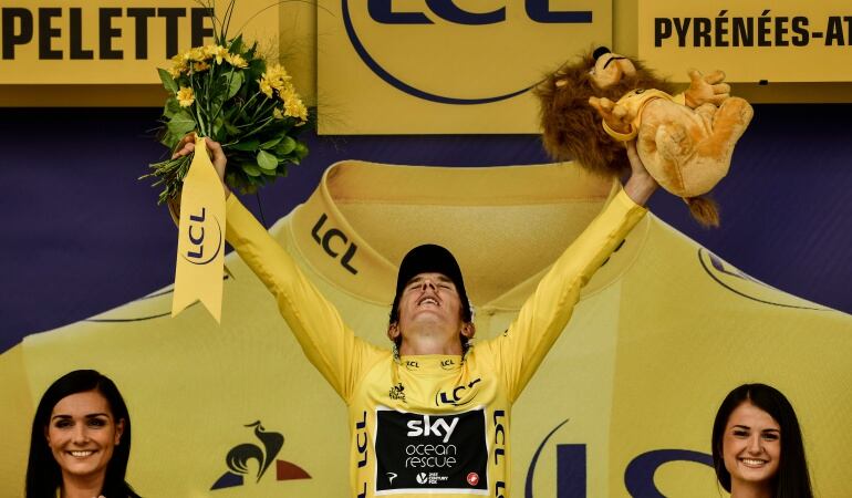 Por fin se marchó Kwiatkowski. Lo levantó su compañero Froome, pero el ciclista de origen keniano se quedó de pie. Llegaba Dumoulin con los colores arcoiris para demostrar que la medalla de oro de la crono de Bergen no fue una casualidad. Y a continuación, brazos en alto, eufórico, se presentaba el heredero de Wiggins y Froome, un galés que prolonga el dominio del Sky en el Tour de Francia.