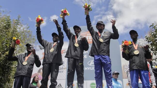 Los africanos dominaron los primeros lugares de la carrera en las categorías masculina y femenina.