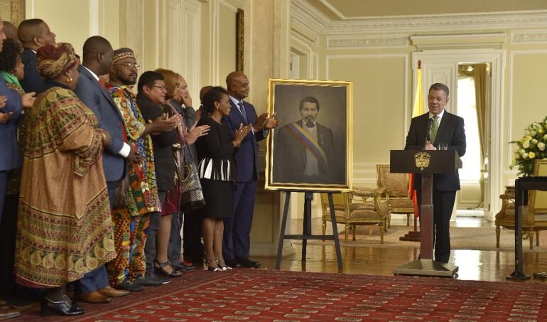 Varios lideres de organizaciones afro que asistieron a la ceremonia le hicieron un reconocimiento al presidente Santos por su lucha por los derechos de las comunidades étnicas y como se abordó este tema durante el acuerdo de paz .