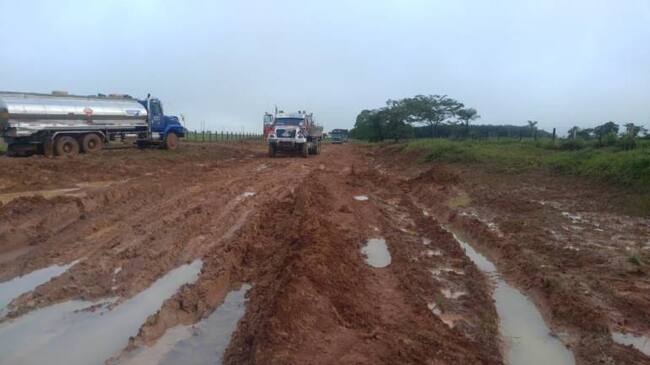 Los camioneros tomaron las vías de hecho como medida de protesta frente al mal estado del carreterable por donde no se puede transitar.