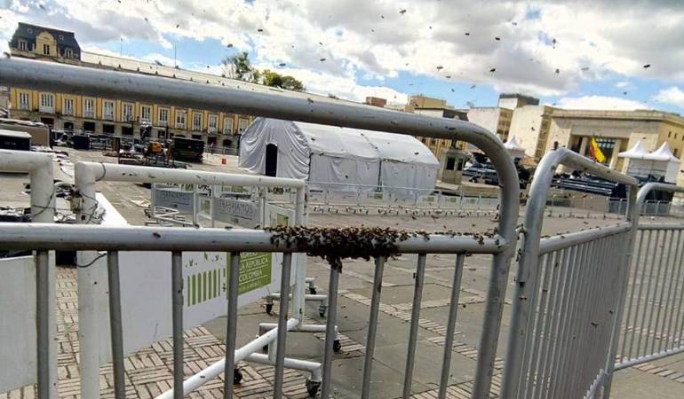 Un enjambre de abejas se instaló en la Plaza de Bolívar en medio de los preparativos que se adelantan para la posesión de Iván Duque como nuevo presidente de Colombia.